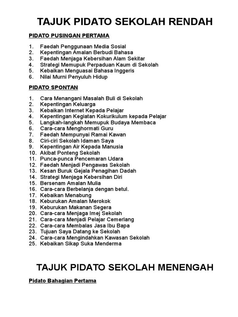 Contoh Teks Pidato Bahasa Inggeris Sekolah Menengah